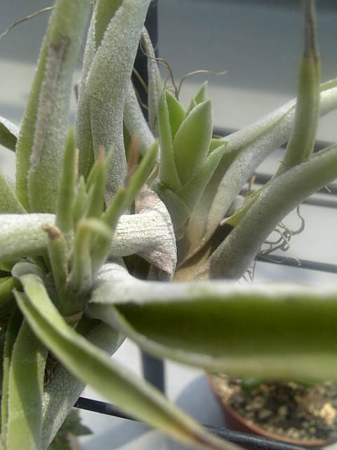 根っこから土の養分を吸収して育ついわゆる一般的な植物と違って、このチラさんたちは空気中の水分を吸収して育ちます。ので、育つスピードが遅い。にもかかわらずこの子ったら・・・!